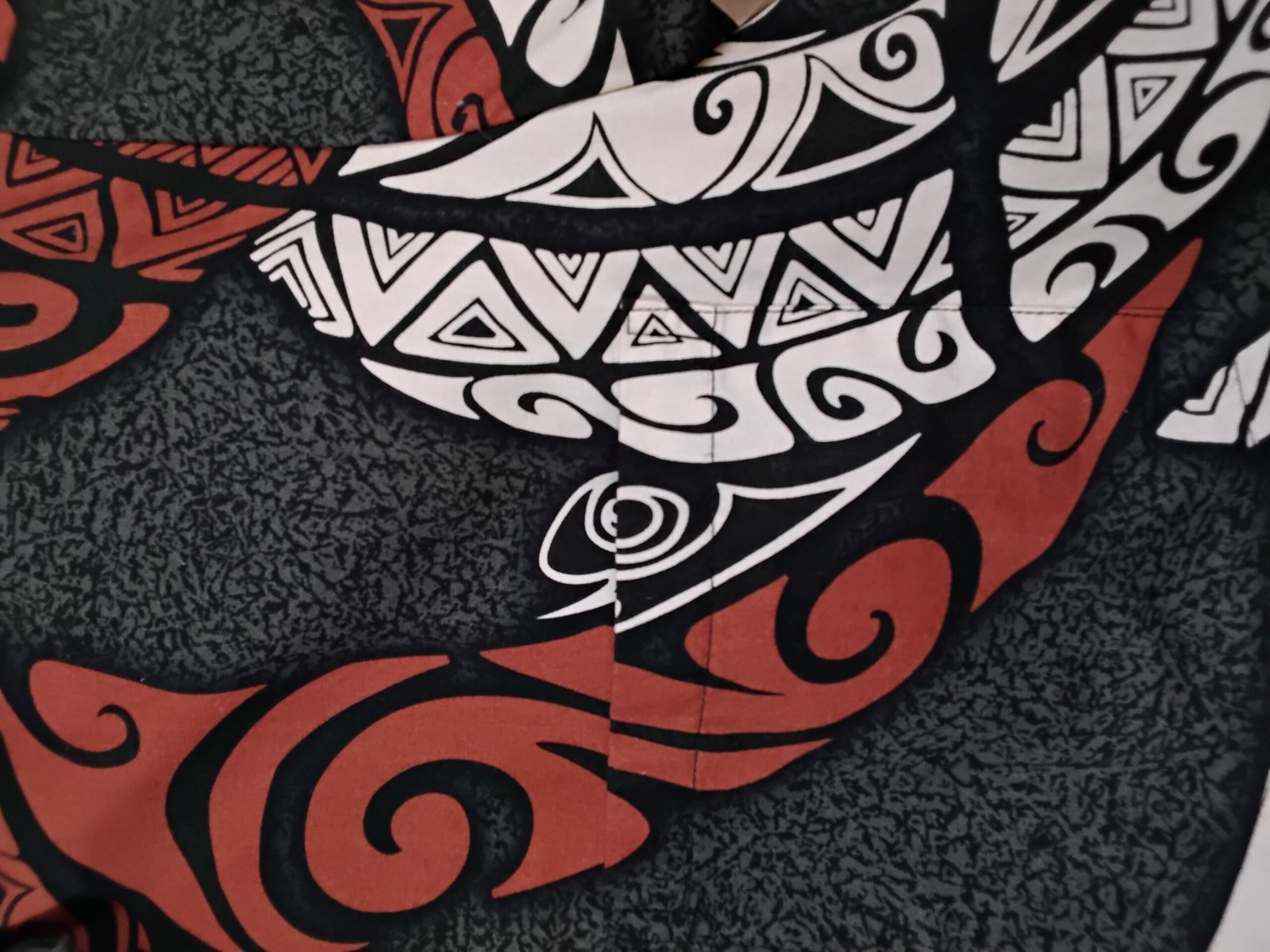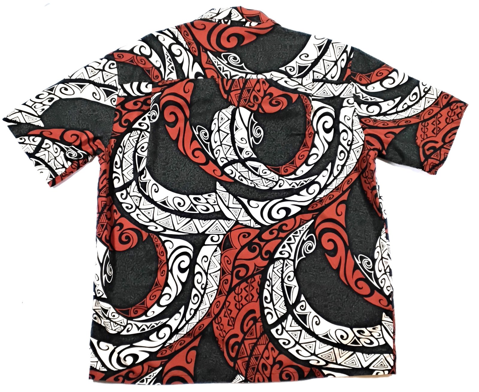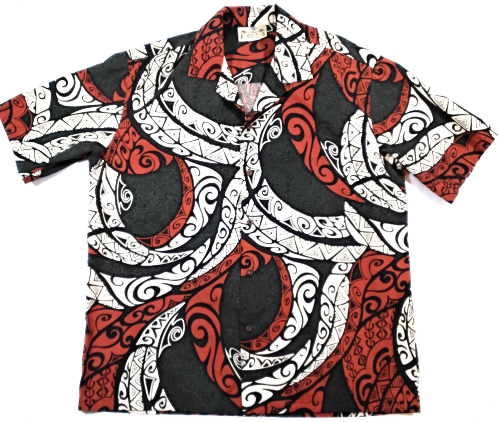 With bold red, black, and white tribal wave patterns, this shirt is made for confidence and attention.